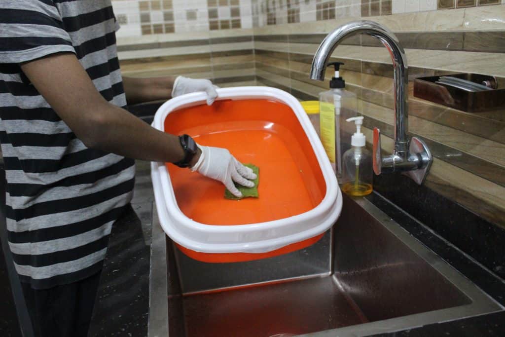 Practice good hygiene to minimize the spread of potential pathogens. Wash your hands thoroughly with soap and water after handling the unvaccinated cat, cleaning their litter box, or handling their food/water bowls.